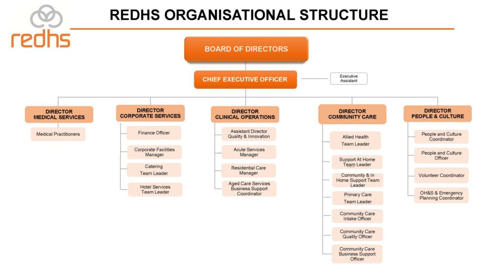 REDHS organisational structure below outlines the roles, responsibilities and reporting structure of our organisation.